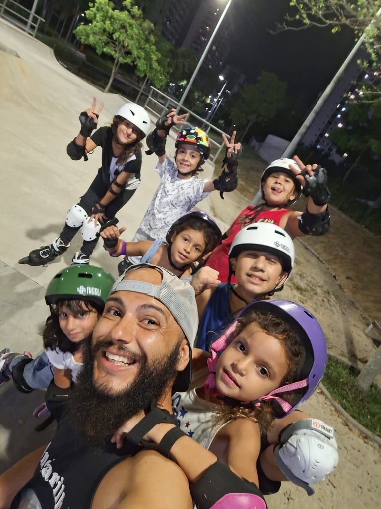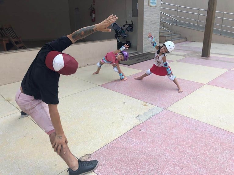 Aos 05 anos de idade conheci os patins através da minha irmã mais velha