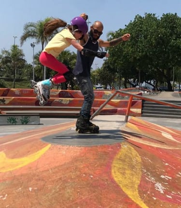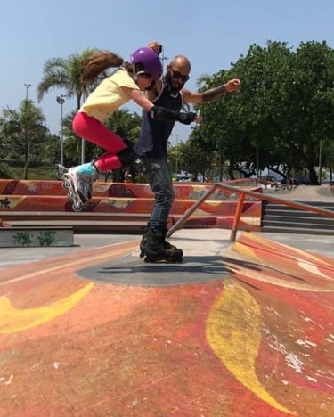 Aos 05 anos de idade conheci os patins através da minha irmã mais velha